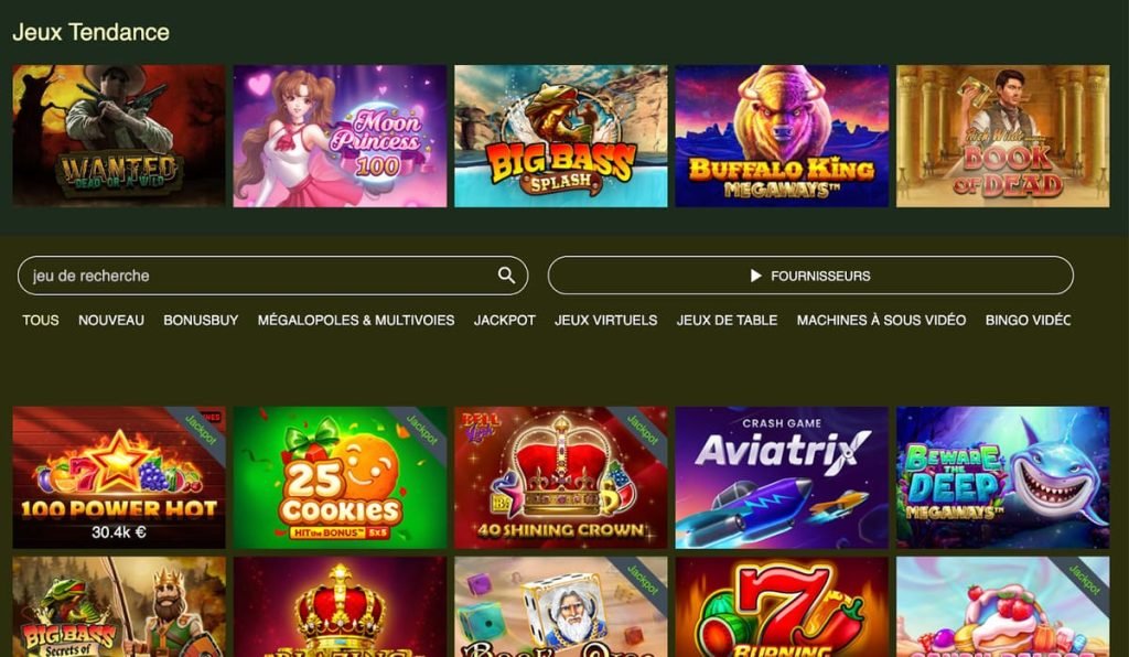 La présence d’un grand nombre de studios permet au casino de proposer un catalogue très large avec différents styles de machines à sous et plusieurs tables de live casino.